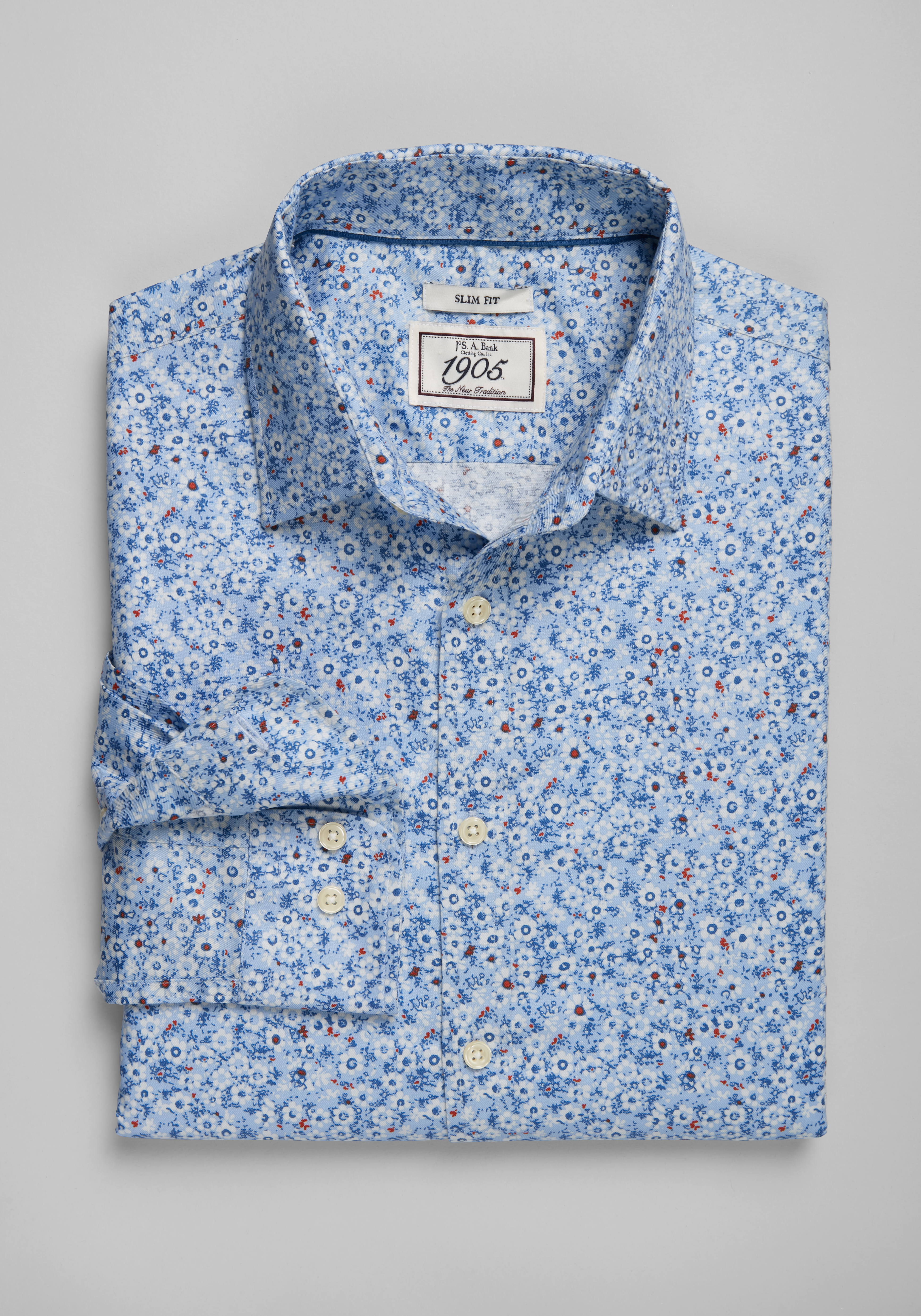 Slim Fit Blue Floral Dress Shirt Rw Co