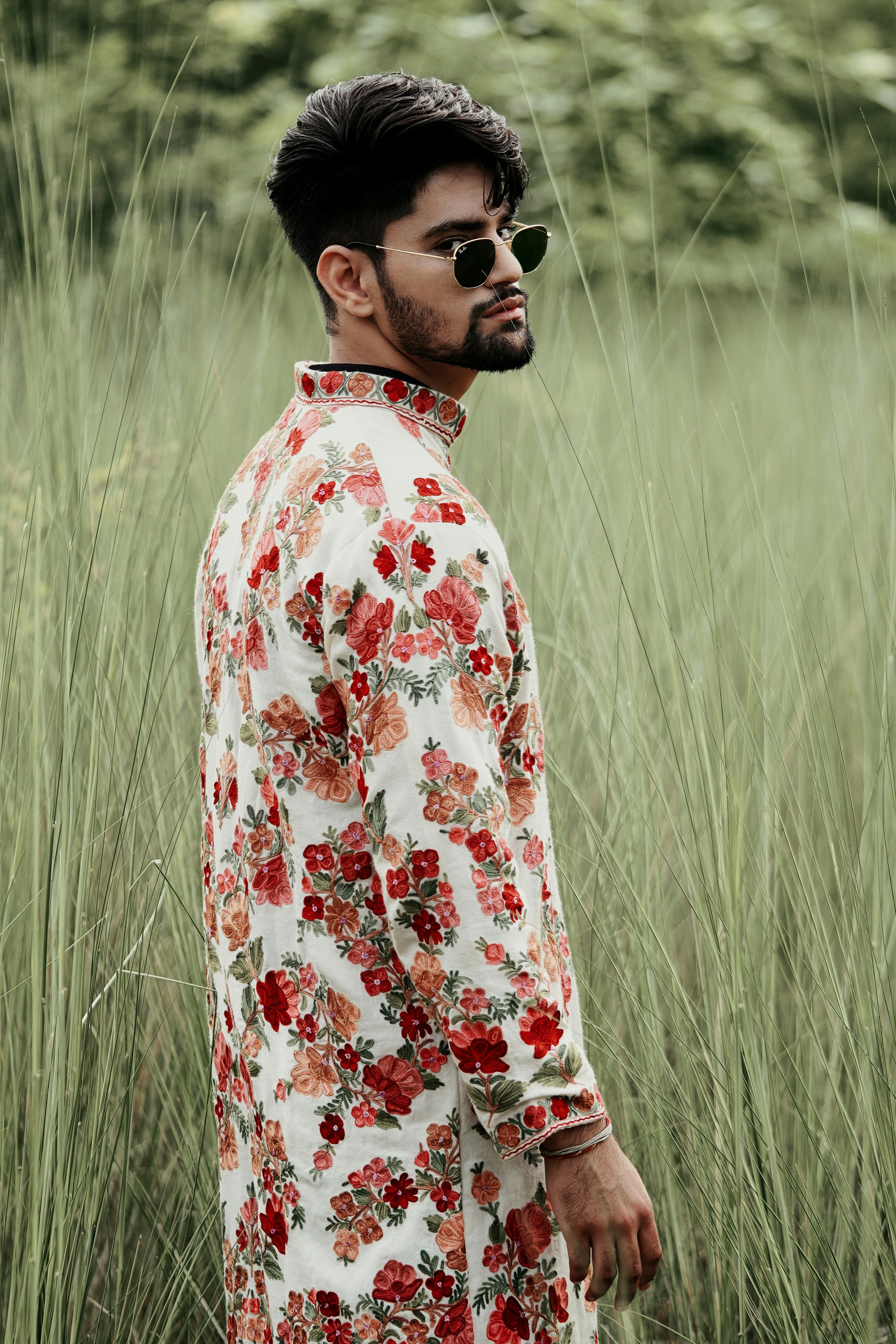 Man In White Red And Blue Floral Dress Shirt Wearing Black Sunglasses Standing On Green Grass Photo Free Image On Unsplash